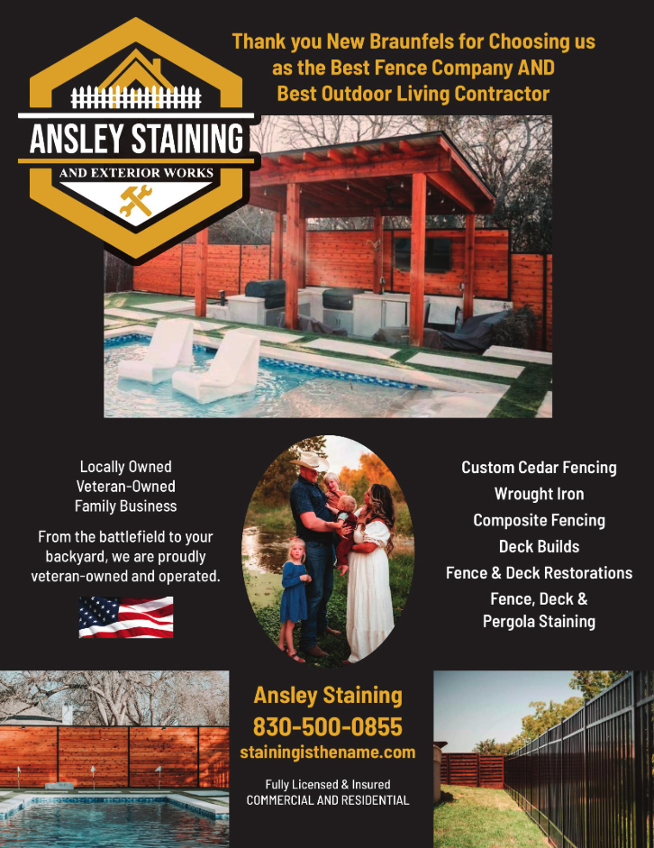 We are Ansley Staining and Exterior Works, a highly experienced team specializing in staining, and fence and deck restorations in New Braunfels, TX and its surrounding areas. With a passion for transforming spaces, we pride ourselves on our meticulous attention to detail and commitment to delivering top-notch results that exceed our clients' expectations.